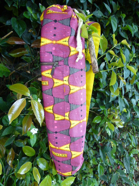 こちらの「HIGH LIFE」な生地で、ヨガマットケースのオーダーいただきました♪