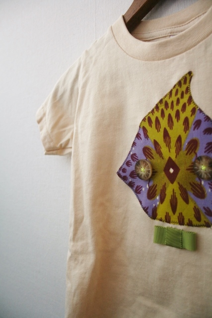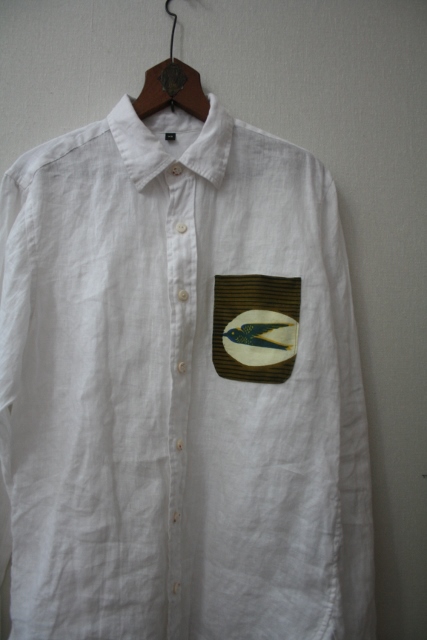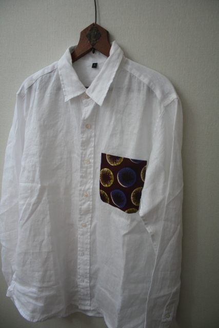 リネン生地のシャツに、アフリカ生地でポッケ♪